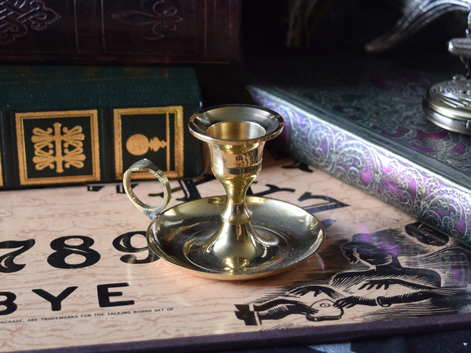 This quaint, teacup-style chamberstick candle holder is like something out of a Victorian novel. It's shiny and solid, and it features a handle for your finger on the side of the base. This holder is for taper candles, which you can find easily right here!