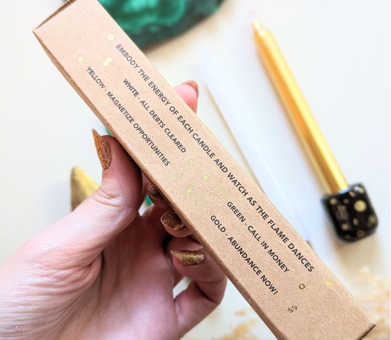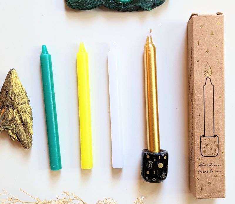 This Abundance Spell Candle Set is perfect for your manifestation practice. Inside, you'll find four different candles: