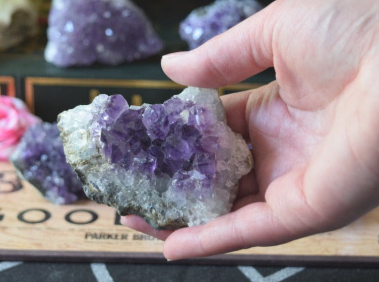 This listing is for one (1) smaller cluster of Amethyst. The size is perfect for smaller spaces and altars, and they can even be placed on top of a spell jar or Tarot card to add a little extra energy. We will intuitively choose the piece for you.