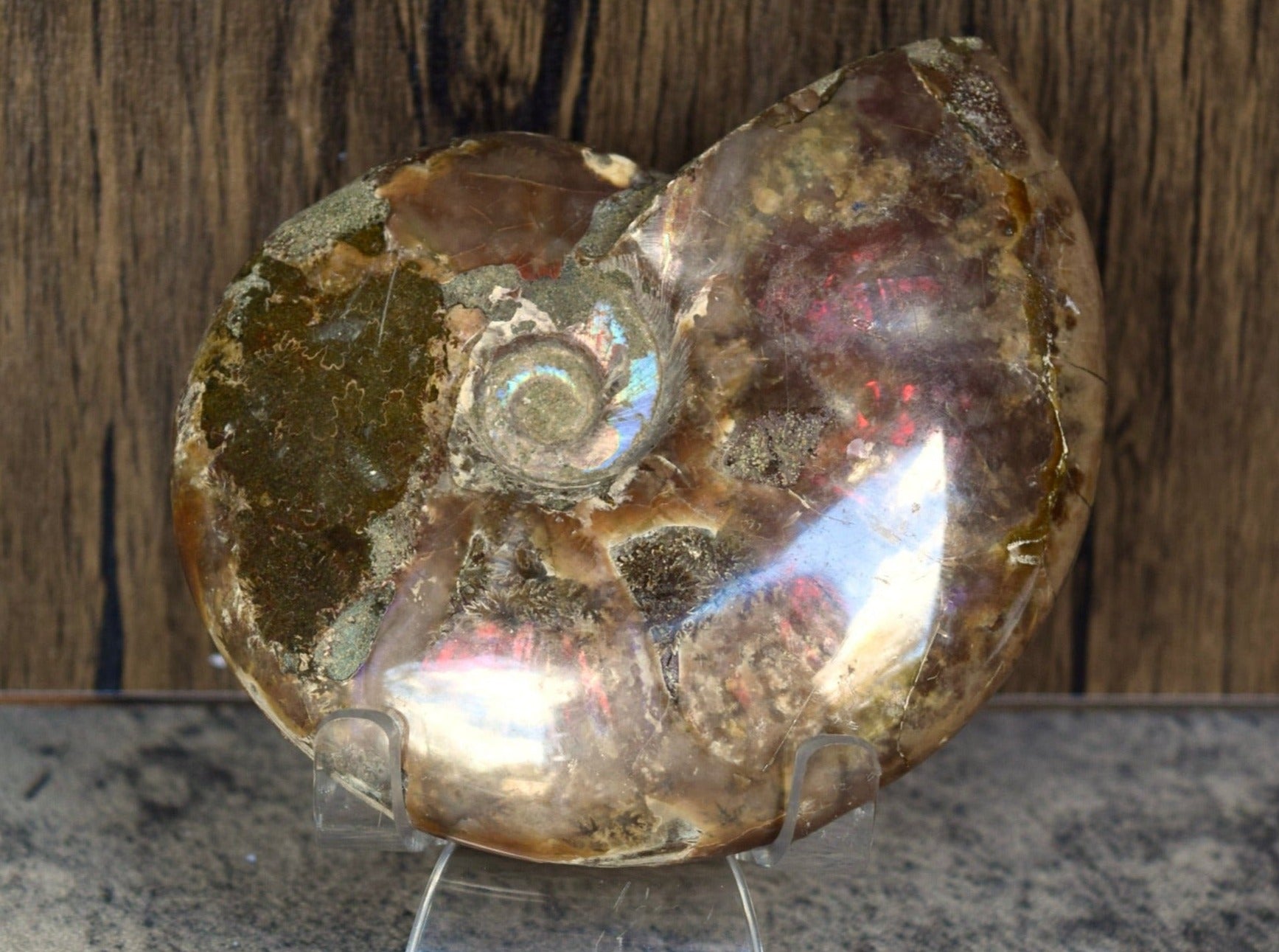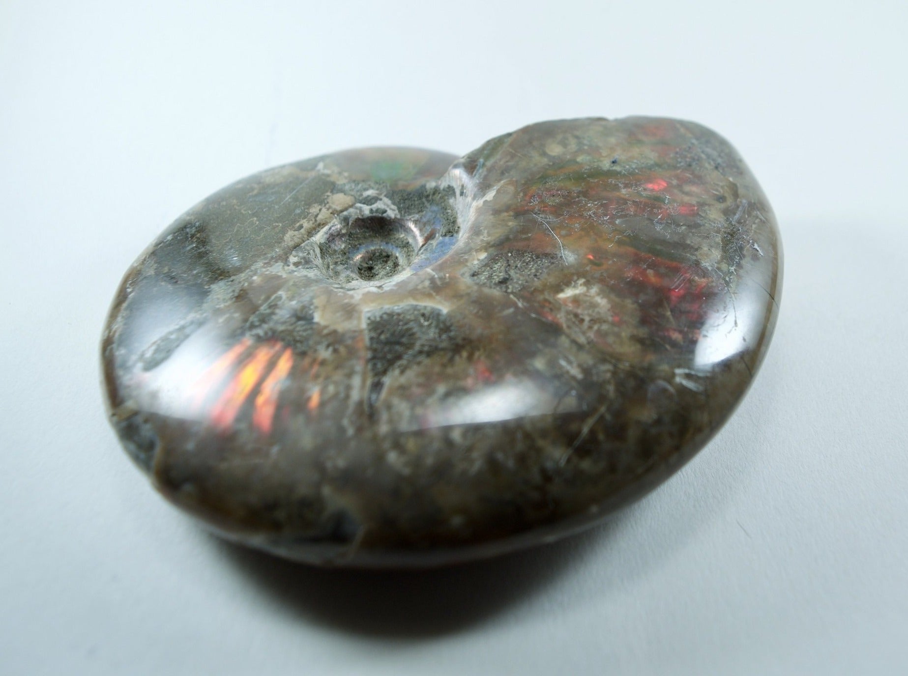 Ammonites are fossils! They are an underwater sea creature from millions of years ago. The beautiful color on ammonites comes about when the substance that was the creature's shell fossilizes and becomes aragonite.