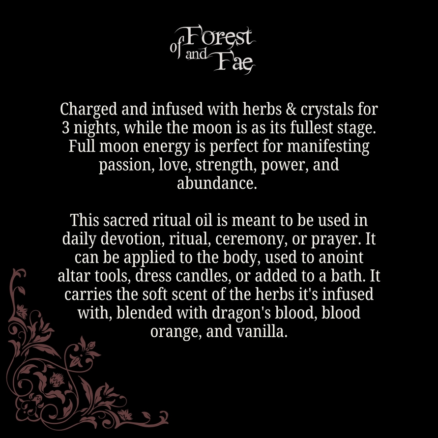 This Attraction Oil was charged and infused with herbs & crystals for three nights, while the moon is as its fullest stage. Full moon energy is perfect for manifesting passion, love, strength, power, and abundance.