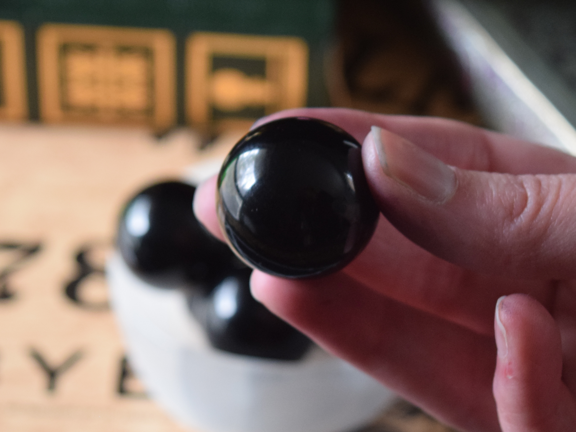 These Black Obsidian Spheres are a nice shooter marble size that can sit snugly on a small stand, candle holder, or ring band. We currently do not have free sphere holders small enough for these spheres. We are working to get them in stock. In the meantime, check out our holders for sale here.