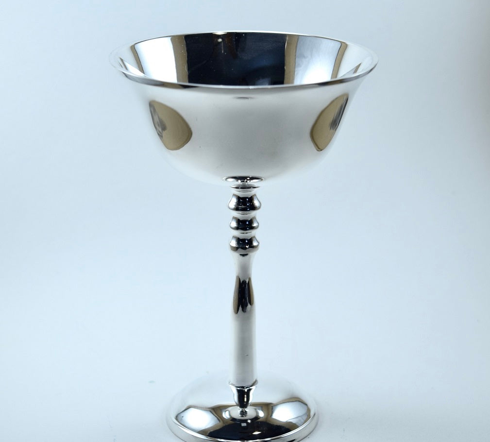 This silver-toned chalice is beautiful yet subtle. While there is no design on the outside, inside the bowl is an etched pentagram! We also love the long, elegant handle on this chalice. It stands 5.75 inches tall.