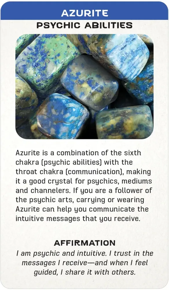 Each crystal message card features a photo of the crystal, a description of its meaning and benefits, and a powerful affirmation. You may pick a single card to receive a crystal message for the day or use the cards as an oracle deck for insight and guidance about a situation. Regardless, this deck is a great learning tool and reference for any crystal lover who wants to study more!