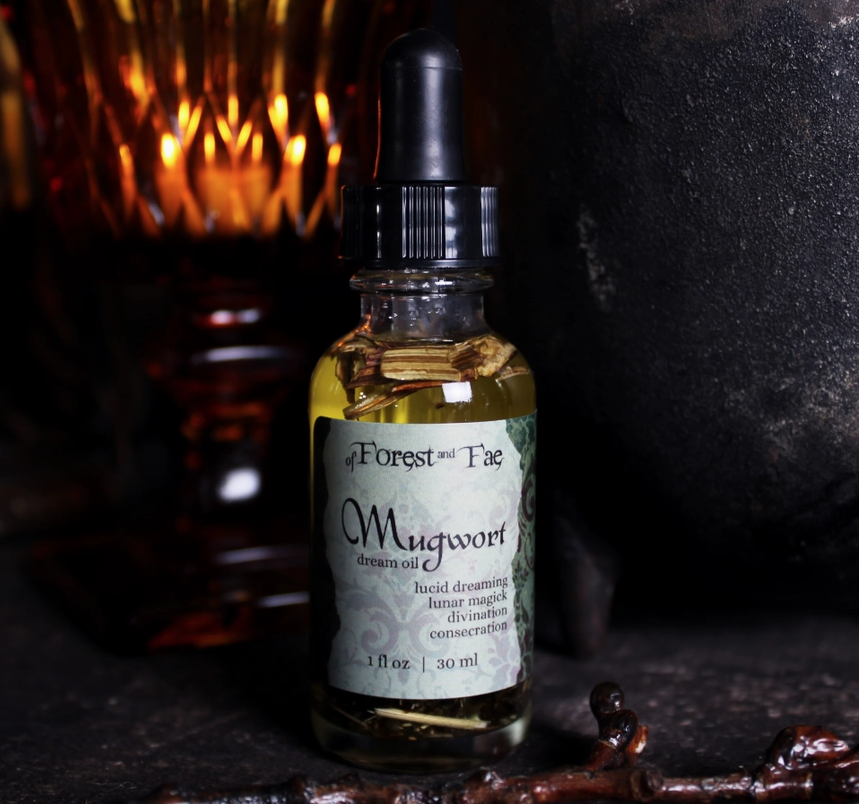 Mugwort oil is used to aid in lucid dreaming, for journey work, to increase intuition, and in divination. It helps bring in a sense of confidence, resilience, healing, relaxation, and transformation.