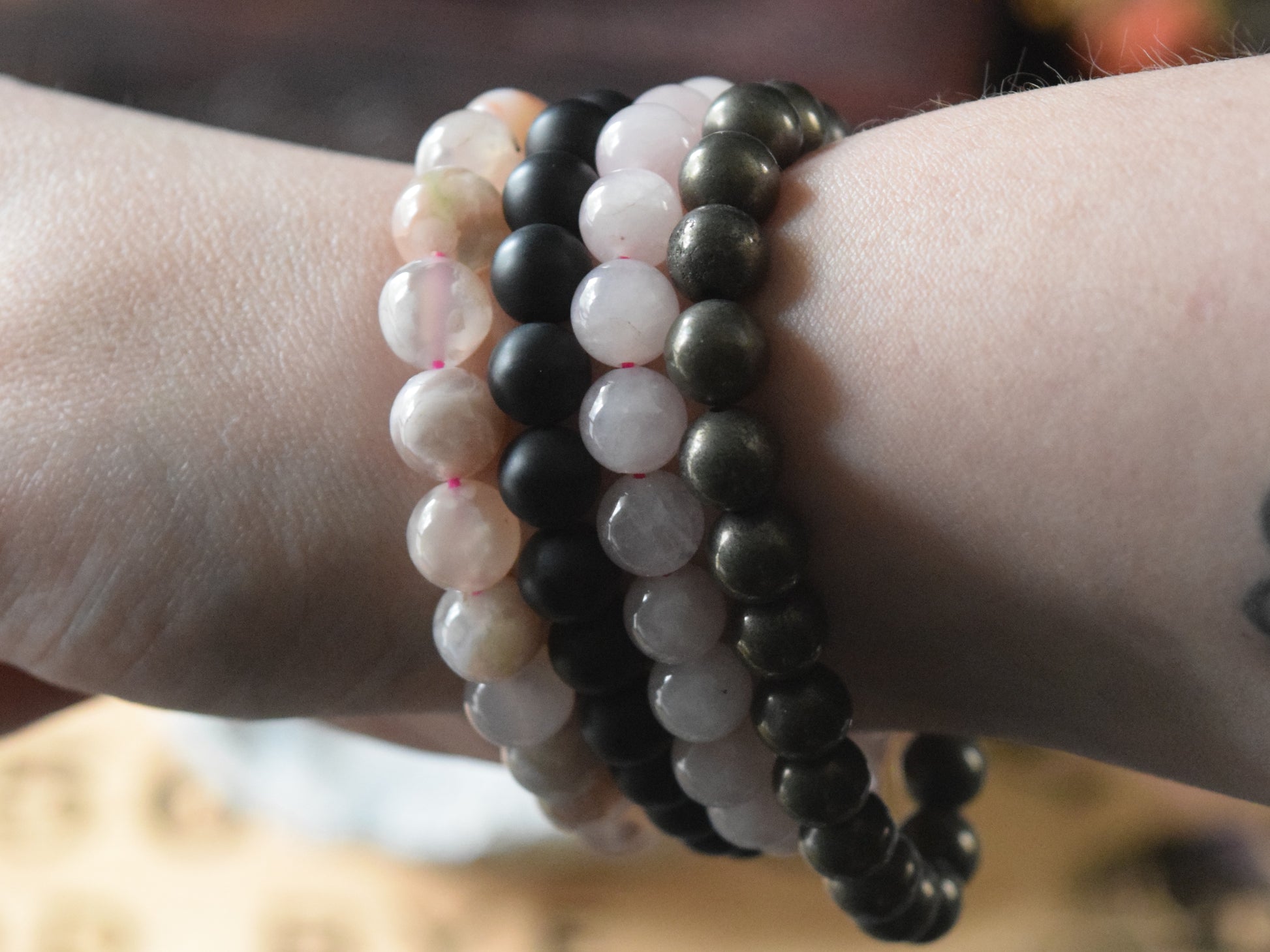 These natural gemstone beaded bracelets are a great way to wear your crystals and bring their energy with you while dressing up your outfit with bits of color and magic.