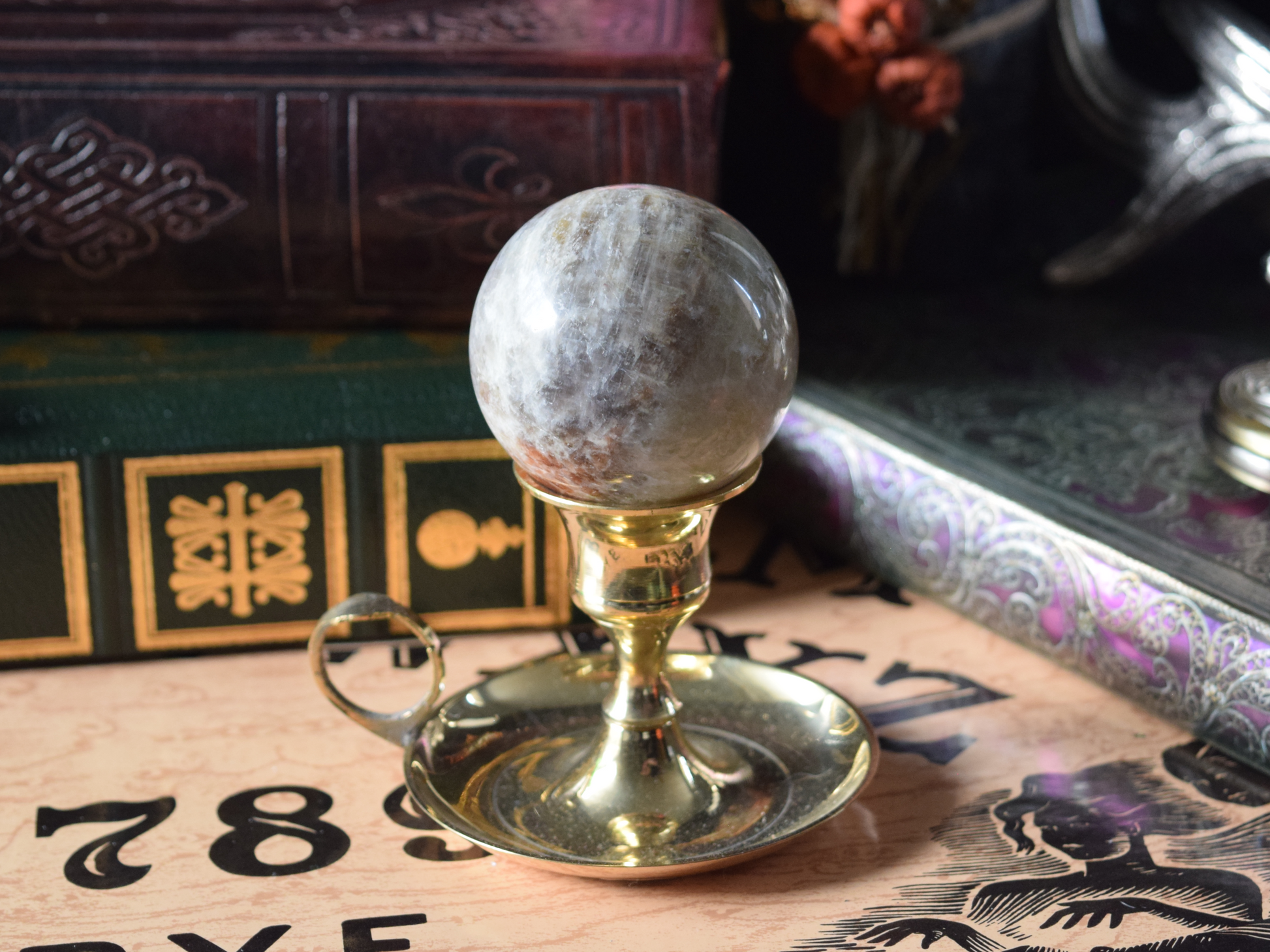 We totally freaked out when we discovered these spheres. As you may or may not know, practicing within a Pagan path is often about BALANCE, and we often represent that by working with both the SUN and the MOON. And what better crystal to do that with than MOONSTONE and SUNSTONE together?!