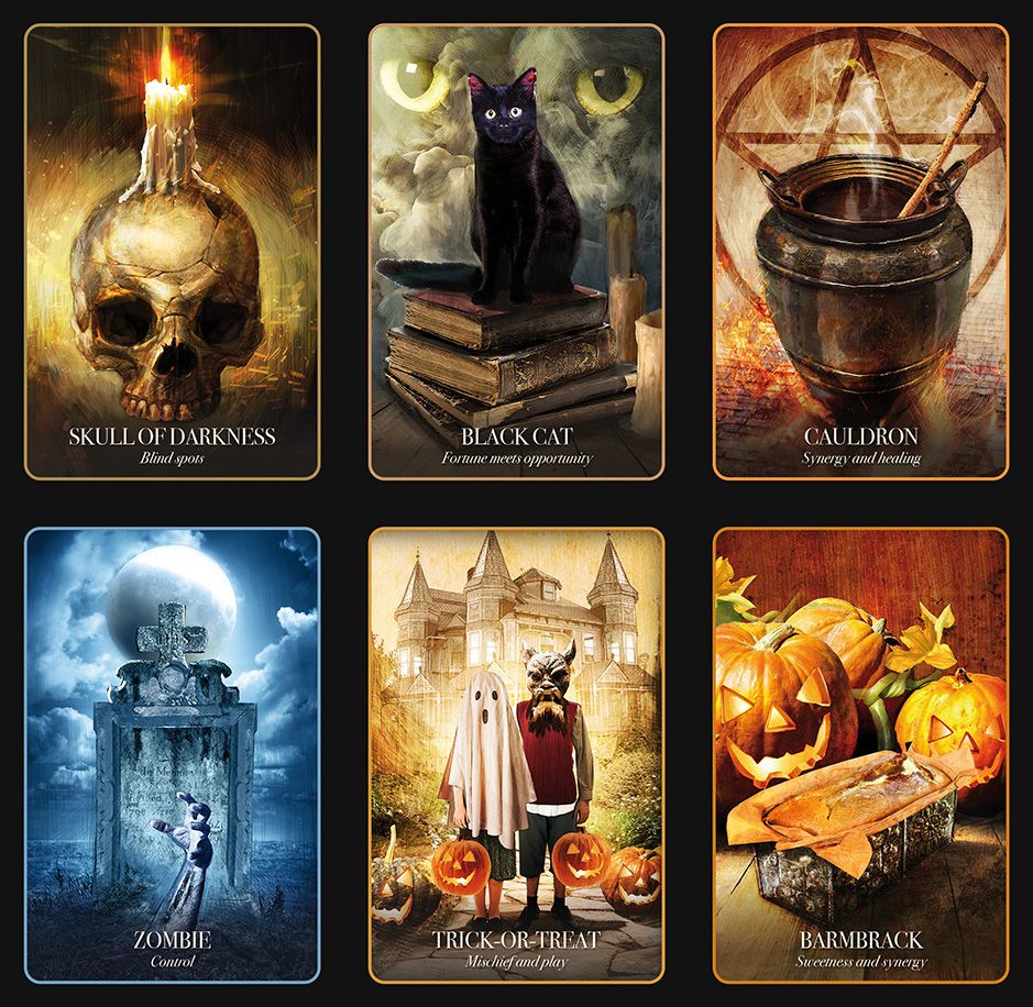 Halloween Oracle offers a chance to connect with “the other side” and glimpse the future. Harness the eerie power of Halloween every night of year, encountering black cats, vampires, zombies, witches, werewolves, jack-o-lanterns, skeletons, mummies and motifs from the Day of the Dead. Each of the 36 richly illustrated cards has an accompanying meaning in the 80-page guidebook featuring rhyming couplets like those used in ancient storytelling as well as a message of divination for you based on an aspect of Halloween tradition.