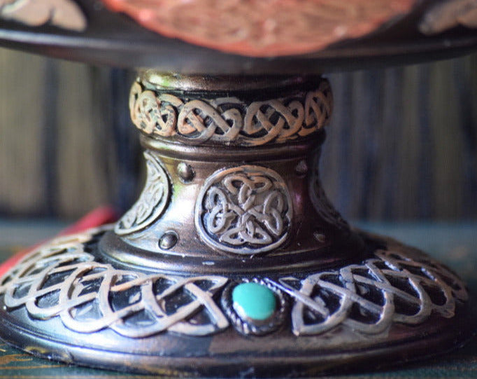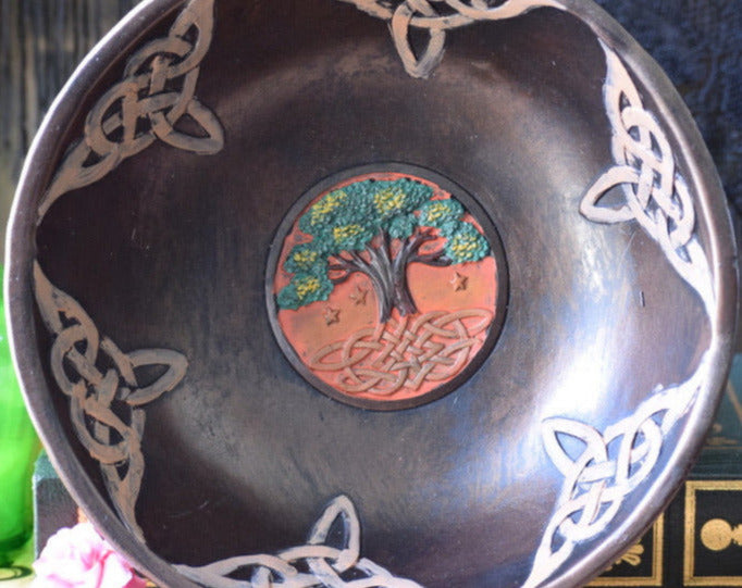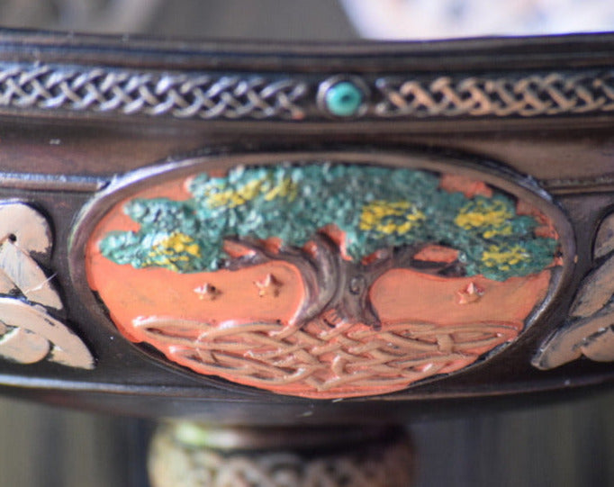 This large, cold-cast resin offering bowl will be a standout piece on your altar. It is hand-painted and displays Celtic-inspired designs throughout, including Triquetras (which represent a divine trinity). The Tree of Life, to earth religions, represents our connection to Earth (through the roots) to the heavens (through the branches).